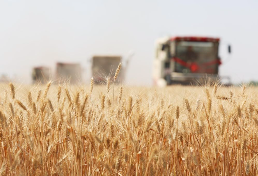 2025年6月10日,河北省石家庄市栾城区柳林屯乡东牛村村民驾驶农机收割小麦。新华社发(梁子栋 摄)