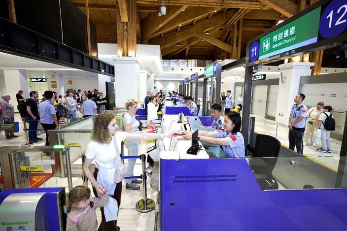 2026年3月27日,三亚凤凰边检站执勤民警为入境旅客办理边检手续。新华社发(蒙绪顺 摄)